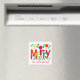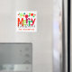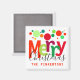 O design colorido deste ímã festivo mostra o texto "Feliz Natal" na tipografia moderna com um nome familiar abaixo para você personalizar. O fundo é decorado com bolinhas em tons brilhantes de vermelho, verde e laranja. Projetado por artista © Tim Coffey