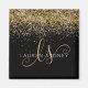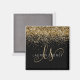 Magnet Elegante De Monograma Com Glitter Dourado. Personalize facilmente este design de ímã chico moderno com elegante brilho dourado em fundo preto. O design apresenta seu monograma manuscrito com espirais bonito e seu nome.