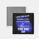 Salve o lembrete de imã de geladeira de data com nome personalizado e data e fogos de artifício azuis.
