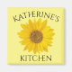 Fotografia aproximada de um girassol amarelo brilhante solteiro e modelos para o primeiro nome e a palavra "cozinha" sobre fundo amarelo claro.