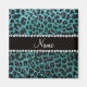 O moderno e moderno nome personalizado personalizado turquesa glitter leopard spots padrão (impressão animal) com uma faixa de diamantes negros (não diamantes reais) com corações e pontos personalizados com seu nome presentes ou presentes monográficos ou suas iniciais. Bonito ideias de presentes impressas em leopardo. Ideal para aniversários e casamentos.