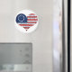 Colorida bandeira vermelha, branca e azul original de 13 estados Betsy Ross American em forma de coração, com a primeira linha do Preâmbulo da Constituição dos Estados Unidos da América.