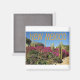 Um produto com uma foto do Novo México e o nome do estado nele. A foto apresenta flores roxas, cactos e um céu azul claro.