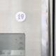 A pintura do número dezenove na lavanda e esboçada em tom mais leve de lavanda, é impressa em ímãs personalizados.