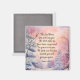 Magnet com uma escritura inspiradora de aspas retrata uma bela cena de aquarela com simples neve coberta de pinheiros e um céu cor-de-sol rosa. Apresenta Números de Versos Bíblias 6:24-26, "O LORD abençoa-te e mantém-te; O LORD faz-lhe brilhar e ser gracioso para ti; O Senhor vira-lhe o rosto e dá-te paz."