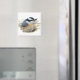 Este ímã está decorado com um Nuthatch de mamas vermelhas que parece que está a assumir o comando! Ele é um pássaro muito pequeno com mama cor de ferrugem, cinza azul e faixa de olhos pretos. Sua cabeça e bico são muito grandes em proporção ao seu corpo.