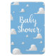 Chá de fraldas Puffy White Clouds em um convite para o dia ensolarado azul.