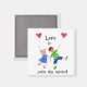 Magneta quadrada com um tom de colagem de papel pintado à mão de 'O amor é...ser bobo juntos!"