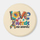 Partilhe a compaixão e o apoio com este ímã de sensibilização para o autismo "Love Needs No Words", que inclui girassol vibrante, coração e quebra-cabeça coloridos. Perfeito para mães, professores, defensores e qualquer um que comemore a aceitação do autismo.
