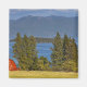 O celeiro vermelho se senta no lago Flathead cênico perto de Rollins, Montana � Chuck Haney / DanitaDelimont.com