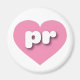 Este ímã apresenta um legal e calmo coração cor-de-rosa contendo letras maiúsculas brancas, em negrito e arredondadas pr, uma versão lúcida da abreviação para Porto Rico, a ilha encantada.