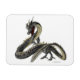 Uma criatura de fantasia asiática, um dragão prateado e escaldante em toda a sua glória, com olhos verdes piscantes e uma atitude surpreendente!