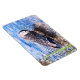 A Mallard Hen está na área rasa de uma lagoa tendendo às suas penas, e fazendo com que as ondulações se movam através da superfície da lagoa em movimento circular. Vocês podem ver o reflexo das nuvens na superfície do lago. E você pode ver através da água limpa e limpa. Copyright Kimberly J Tilley.