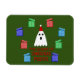 Este incrível ímã apresenta um fantasma de Natal bonito com olhos pretos e boca bem aberta. O fantasma está vestindo um chapéu vermelho e branco festivo com pompom no topo. Há presentes brilhantemente vermelhos, azuis e verdes ao redor do fantasma. Uma mensagem em texto vermelho festivo abaixo do fantasma diz "O Espírito dos Presentes de Natal" em letras maiúsculas. Esta design festiva engraçada é adequada para todas as idades.