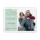 A design da Wonderland de inverno apresenta flocos de neve brancos macios e folhas desenhadas à mão e galhos sobre um lindo fundo de aquarela verde-azul em branco. Adicione a sua foto favorita e personalize as informações de texto para salvar maravilhosamente a papelaria de data que certamente impressionará! Personalize-o ainda mais removendo a foto e adicionando mais texto. Esta salva de design é perfeita para enviar desejos de férias aos seus convidados juntamente com as suas informações de casamento.