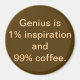 Este ímã oferece uma tomada única de uma antiga citação. Mantenha a sua transpiração. Eu tomo café! Se você concorda com esse sentimento, este é o ímã para você. A design apresenta um fundo marrom para café com escrevendo colorido creme, que diz, "O Genius é 1% de inspiração e 99% de café." GÊNIO! Se você não consegue ver a sabedoria em comprar este ímã, você claramente não tomou café suficiente. Continua a beber café até que ordene isto parece uma boa ideia!
