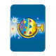 Este design apresenta o nosso globo ou a Terra num suporte. O globo é colorido com cores pastéis listradas ao redor do globo. Nas listras estão corações coloridos com cores pastéis. O apoio azul representa o céu. O céu está explodindo com estrelas coloridas explodindo sobre o globo. Esses ímãs estão disponíveis em estilos e tamanhos variados.