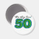 Um grande número de 50 em um texto azul legal, verde é apresentado em nossas t-shirts de 5-0 anos, canecas, botões e outros equipamentos de 50 anos. É o grande!