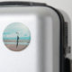 Um guarda-chuva é colocado na areia, na praia virada para o mar, com muitas ondas e cores suaves