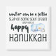 Um design que combina a deliciosa tradição de latas e creme azedo com um punny dizendo que "o inverno é muito", enquanto desejava uma feliz temporada de férias. Ilustrado com um homem de neve solto, este design é engraçado e sarcástico e faz um presente excelente para qualquer ente amado judeu que odeia o inverno. Copyright e projetado por JA Murphy Design LLC (2023)