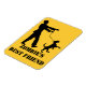 O que acontece com todos os animais de estimação depois de um apocalipse zombie, bem, eles seguem seus mestrados zombie, é claro. Grande ímã divertido feito em amarelo, com uma silhueta preta de um zumbi liderando seu cachorro zombie em uma coleira. O texto preto a negrito, na parte inferior lê, "O Melhor Amigo de Zombie". Personalize o texto para ler o que quiser.