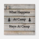 O que acontece no acampamento fica no acampamento é uma design criada por Debbie Quick of Debs Creative Images. Esta design foi criada de uma foto que Debbie tirou de um lado de um celeiro e adicionou texto sobre ele.