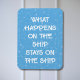 O que acontece no navio fica no navio - ímã da porta do cruzeiro. Decorre a porta do cruzeiro com este ímã de porta de cruzeiro divertido. O ímã marca a sua porta para facilitar a localização no "mar" das portas do stateroom. Por favor, note: nem todas as portas da nave são magnéticas. Não podemos garantir que sua porta será magnética. Por favor, verifique com seu agente de viagem, a linha de cruzeiro ou através de fóruns.