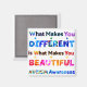 Citação inspiradora de "O que faz você diferente é o que o torna bonito" com quebra-cabeça autistas únicos e bonitos, e flores para apoiar e defender a consciência do autismo.