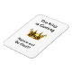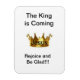 Coroa ouro no ímã com as palavras "O Rei vem. Alegre-se e fique feliz" com o nome "Jesus" na coroa