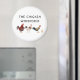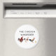 Design magneta engraçado para amantes de galinha e fazendeiros com ilustração aquarela de frangos e pintinho com texto que diz "o galinheiro"