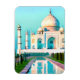 Magnet em ilustração do Taj Mahal, refletido numa piscina, sob um céu azul-aquamarino