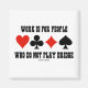 Faça com que outros façam uma dupla avaliação sobre o tipo de trabalho que está sendo feito durante um jogo de pontes com qualquer um desses presentes com os quatro trajes de cartas e a frase "Trabalho é para Pessoas que não jogam ponte". Presentes de humor nas pontes para todos que entendem que a ponte é mais importante do que o trabalho e pode consumir muito tempo longe de sua ocupação!
