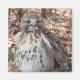Um fim acima de um vermelho atou o falcão que senta-se no lago nuclear próximo à terra em Pawling, NY.