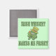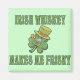 Esta Rua do Dia de Patrick apresenta um sorridente shamrock de desenho animado com uma barba, um cano, e um grande chapéu verde e a legenda "Irish Whiskey Makes Me Frisky" em grande texto verde.