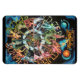 Uma ilustração imaginativa, detalhada e caprichosa, perfeita para sopros astrologicos e pessoas de todos os sinais solares. Doze adolescentes vestidas pelos símbolos tradicionais do oeste, o grego Zodiac, sentam-se sobre uma roda circular, ouro celeste, com espirais orgânicos, suas constelações próximas ao centro em círculo, e no centro da roda estão as doze respectivas pedras de nascimento do zodíaco. As meninas estão vestidas de forma brilhante, em cada sinal de zodíaco. Atrás dos personagens brilhantes e coloridos está um céu escuro noturno com nebulosas turquesas giratórias, e no topo está o planeta Saturno visto em turquesa, o sol e a lua em ouro amarelo-alaranjado e turquesa, e a palavra "Zodiac" pintada em ouro amarelo-alaranjado. Esta pintura foi feita em aquarela e guache, e é de todas as minhas personagens que eu mais tarde desenvolveria em pinturas separadas de cada signo zodíaco. Excelente de trabalho de arte para adolescentes e a divertida e jovem de coração.