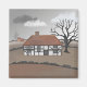 Colourful artwork of an old Wealden farmhouse in the Kent countryside, with oast houses in the background. Perfect for anyone who loves folk art.