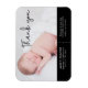 Personalizado com a foto do bebê e mensagem especial. Este design usa uma fonte elegante desenhada à mão para um toque de sofisticação. Expresse sua entusiasmo de anunciar o nascimento do seu filho e envie sua gratidão ao mesmo tempo.