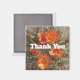 Expresse sua apreciação com este belo ímã com uma foto que captura flores laranja brilhantes de cacto. Esta foto floral é acompanhada pelas palavras "obrigado você", que aparece em letras brancas achatadas através do centro deste ímã. Todo texto pode ser facilmente personalizado para atender às suas necessidades.