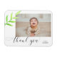 Simples e elegante obrigado de aniversário com um ímã fotográfico. Design inclui uma fonte elegante de letras de script com alternâncias. Cartões de agradecimentos/ímã design minimalista. Inclui uma ilustração simples de folha botânica a aquarela.