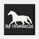 Você é obcecado com cavalos ou pôneis? Se sim, alimente seu viciado em cavalos com este design equestre equestre é perfeito para você. "Minha Obsessão" com uma silhueta de cavalo trotando. Faz um presente de excelente para qualquer amante de cavalos que cavalga, caça, salto, equitação, saltadores, eventos ou caminhada. Procure no meu compro outros presentes de cavalo correspondentes para a vaqueira ou vaqueiro na sua vida.