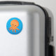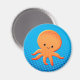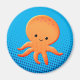 Um polvo de desenho laranja giro. Fundo azul. Ímanes de animais bebês. Ideia de presente para crianças.
