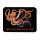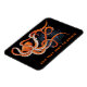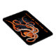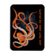 Um polvo laranja contra um pano de fundo de preto. Tentáculos de polvo dentro e em volta de bolhas e uma mandala azul