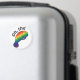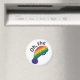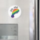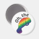 Redonda Magnet com um manatim colorido implorando "Oh o Manatee da Matiz" É uma peça engraçada na famosa frase "Oh a Humanidade" proferida por Herbert Morrison, um repórter americano, cobrindo o desastre de Hindenberg. Desde então, tornou-se uma frase popular e vacas coloridas do arco-íris como esta estão aparecendo em todos os lugares.