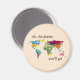 Um belo ímã com um mapa do mundo colorido e o texto 'oh, os lugares que você vai' para o seu pequeno mapa.