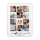 Oh veado que ano em revisão doze fotos colagem com íman flexível roxo. Um ímã de Natal moderno, com uma coleção de fotos de doze fotos com a cinza, fotografa um para cada mês, e a mensagem: "Oh veado, que ano" em roxo real, com uma cinza, em vez da palavra veado. Todas as fotos, exceto uma, são de Fotografia © Storytree Studios, Stanford, CA