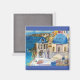 Oia está situada a norte da ilha, a 12 km de Fira. Hoje, Oia é uma cidade de beleza rara, com suas casas brancas e azuis e bougainvillea de cor rosa profunda que contrasta com as cores típicas das casas, as igrejas com suas abdominais azuis brilhantes, parecem uma pintura.