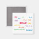 Uma maneira única de dizer a alguém que você tem pensado sobre eles! Este imã legal diz olá em várias línguas, incluindo inglês, francês, holandês, alemão, russo, espanhol, norueguês, italiano, chinês, coreano e japonês!