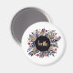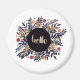A ilustração é feita com aquarelas e guaches no papel. Indigo, ostro e folhagem laranja e flores com uma mão escrita como olá de ouro no meio.