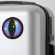 Olhos grandes, azuis e roxos, com pupilas cortadas.