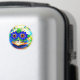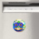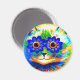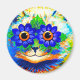 Magnet com pintura de animais de Louis Wain: Olhos de Flor Gato (1860-1939). Um gato arco-íris sorri muito. Flores azuis cobrir seus olhos. Um presente maravilhoso para amantes de gatos e arte inglesa.